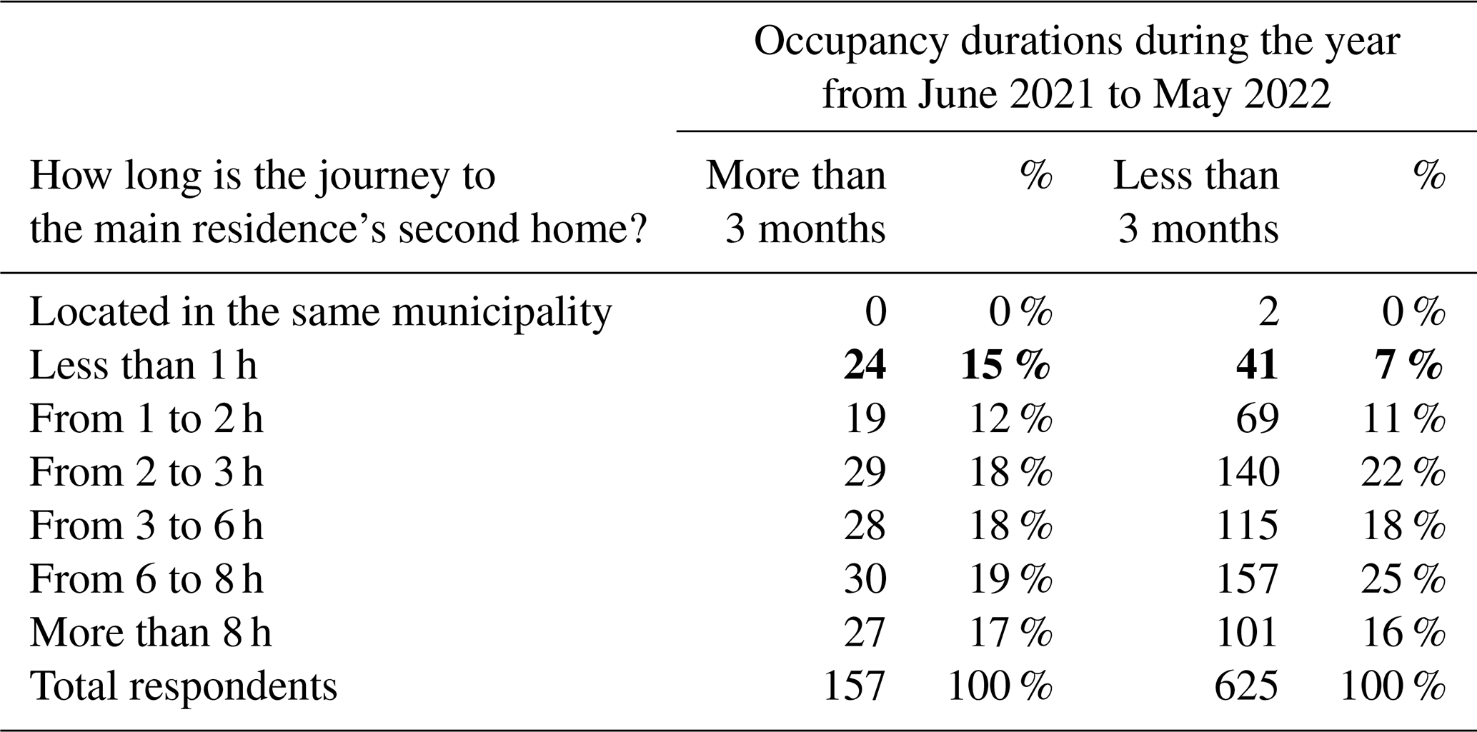 Table 3Cross-analysis between the travel time from the main residence and the duration of occupation of the four French resorts analysed.