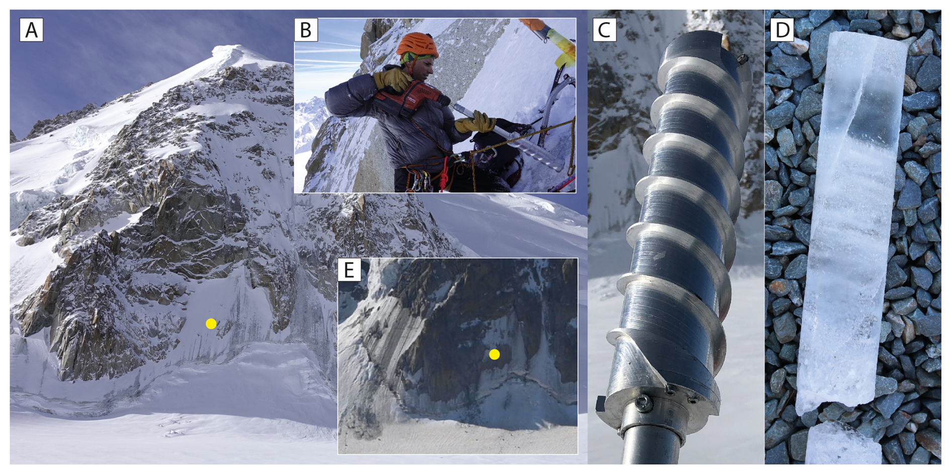 To evaluate this potential, ice sampling necessitates the design of a dedicated lightweight corer compatible with mountaineering techniques, the development of which we describe in detail herein. It was successfully used for the first time on one of the largest IAs in the Mont-Blanc massif, the Linceul, on the northern face of Les Grandes Jorasses (4208 m a.s.l.), almost 9 m thick in the drilled zone.