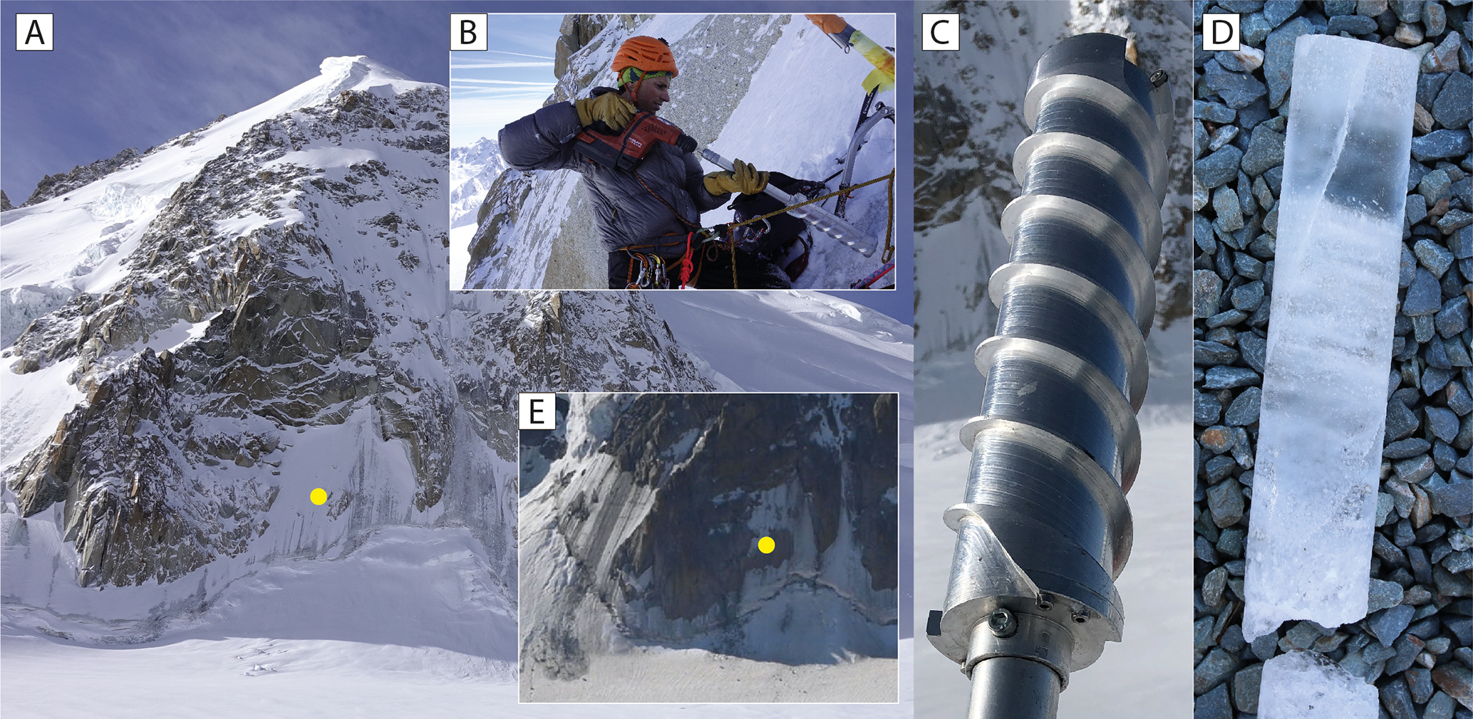 Ice aprons are little-known ice masses on steep Alpine rock faces. They are also paleo-environmental archives as their ice is several thousand years old. A special corer has been developed to sample the ice before analysing it.