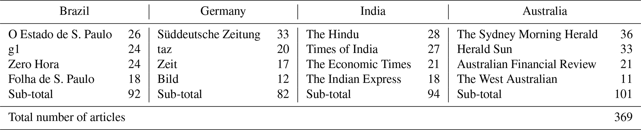 Table 1Selected newspapers per country and corresponding number of articles retrieved.